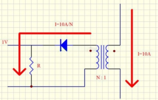 有用提示電流互感中的二極管和副邊繞組的電阻不會影響電流的檢測,因為(隻需阻抗不是無窮大)串聯電路中電流處處相等,與串聯的元件無關。
