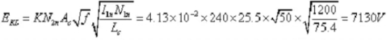 咱們取一次額外安匝I1nN1n=1200A,N2n=240,Ac=25.5cm2,Lc=75.4cm,f=50Hz,鐵芯是冷軋矽鋼片,卷鐵芯,K=4.13×10-2,所以二次開路峰值電壓等於