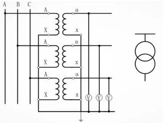 接成Y0形的二次線圈供電給外表、繼ji電dian器qi及ji絕jue緣yuan監jian察cha電dian壓ya表biao等deng。輔fu佐zuo二er次ci線xian圈quan接jie成cheng啟qi齒chi三san角jiao形xing,供gong電dian給gei絕jue緣yuan監jian察cha電dian壓ya繼ji電dian器qi。當dang三san相xiang係xi統tong正zheng常chang作zuo業ye時shi,三san相xiang電dian壓ya均jun衡heng,啟qi齒chi三san角jiao形xing兩liang端duan電dian壓ya為wei零ling。當dang某mou一yi相xiang接jie地di時shi,啟qi齒chi三san角jiao形xing兩liang端duan呈cheng現xian零ling序xu電dian壓ya,使shi絕jue緣yuan監jian察cha電dian壓ya繼ji電dian器qi動dong作zuo,發fa出chu信xin號hao。用yong於yu3~220kV係統(110kV及以上無高壓熔斷器),供接入交流電網絕緣監督外表和繼電器用。