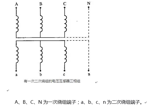 電壓互感器端子標明大寫字母A、B、C和N標明一次繞組端子,而小寫字母a、b、c和n則標明相應的二次繞組端子。