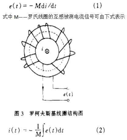 在有源電子式電流互感器中.作為一次電流采樣傳感頭的元件有很多種、有傳統的電磁式電流互感器、特別設計的小信號電流互感器、分流電阻器、羅柯夫斯基線圈等。其間羅柯夫斯基線圈以其超卓的頻率響應、高的檢測準確度和結構簡略、本錢賤價等特性而成為首選。所以依據羅柯夫斯基線圈的有源ETA也就成為最具發展潛力的光電互感器產品,它既可以用作關閉電器GIS、插接式組合電器PASS中的電流檢測設備,又可用於敞開式獨立有源ETA。羅柯夫斯基線圈是將導線均勻地繞在一個非磁性資料的骨架上製造而成的空心線圈,如圖3所示。載流導線從線圈中心穿過,當導線上有電流經過期,在線圈的兩頭將會發生一個感應電勢e,其巨細為