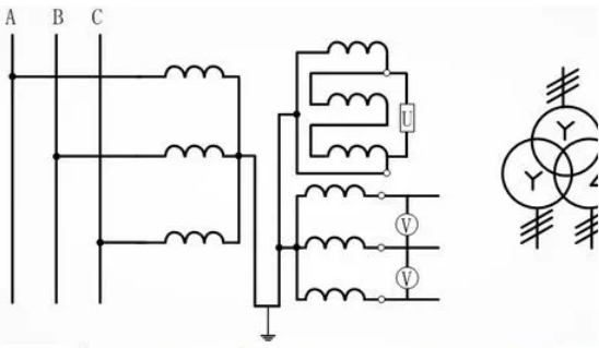 係統或經消弧線圈接地的35KV及以下的高壓三相係統,特別是10KV三相係統,接線來源於三角形接線,僅僅“口”沒閉住,稱為Vv接,此接線方法可以儉省一台電壓互感器,可滿意三相有功、無功電能計量的懇求,但不能用於測量相電壓,不能接入監督係統絕緣情況的電壓表。