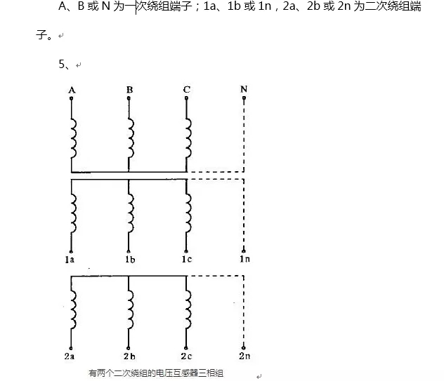 A、B、C、N為一次繞組端子;1a、1b、1c、1n、2a、2b、2c、2n為二次繞組端子。